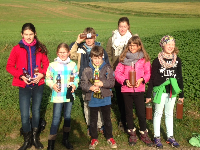 ... haben 6 Kids der NAJU mit Michael Schulte und Nina Probst am Samstag den, 15.Oktober auf der Streuobstwiese am Kirchberg hergestellt.