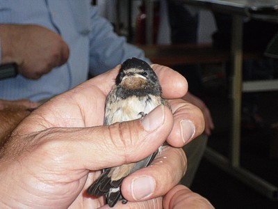 Zum Ende der Veranstaltung brachte ein Aussteller dem NABU-Team eine junge Rauchschwalbe, die ihre ersten Flugversuche in